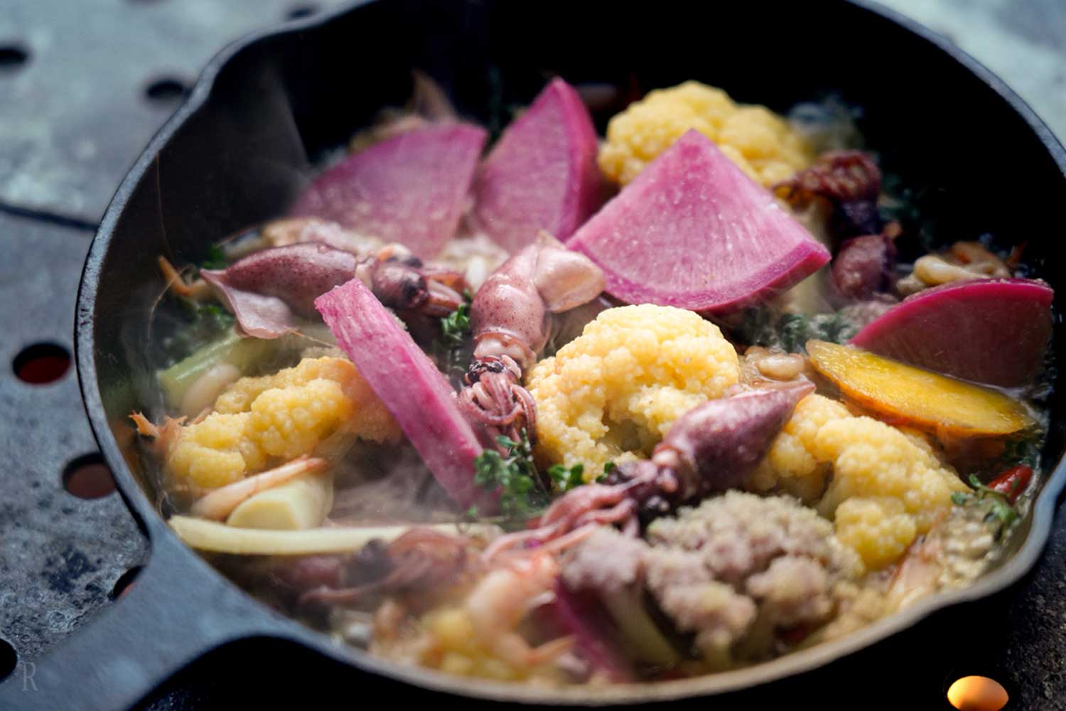 您可以用五种感官享受柴火带来的肉类和海鲜的浓郁风味和香气,这是一个幸福的时刻。